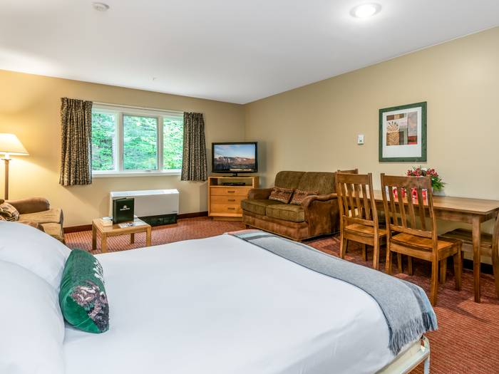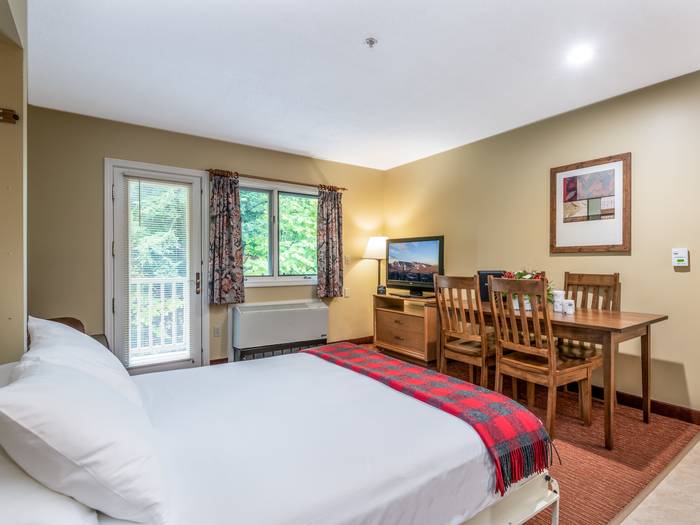 Studio Superiors offer a queen-sized Murphy Bed and kitchenette. Murphy beds pull down from the wall and fold up out of sight when not in use. Mattresses rest on platforms. Select units also offer an outdoor deck, adjoining lockout room, or handicap accessibility.