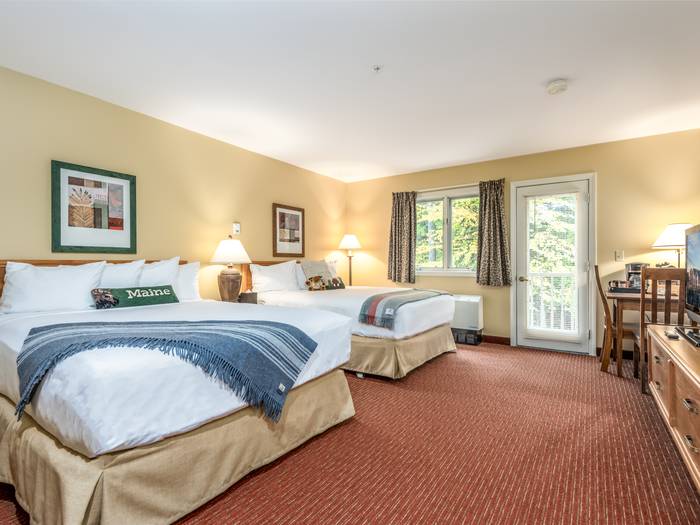 Standard Rooms offer two queen beds. Select units offer an outdoor deck, adjoining lockout room, or alternate bed configuration with one queen bed and one sleeper sofa.