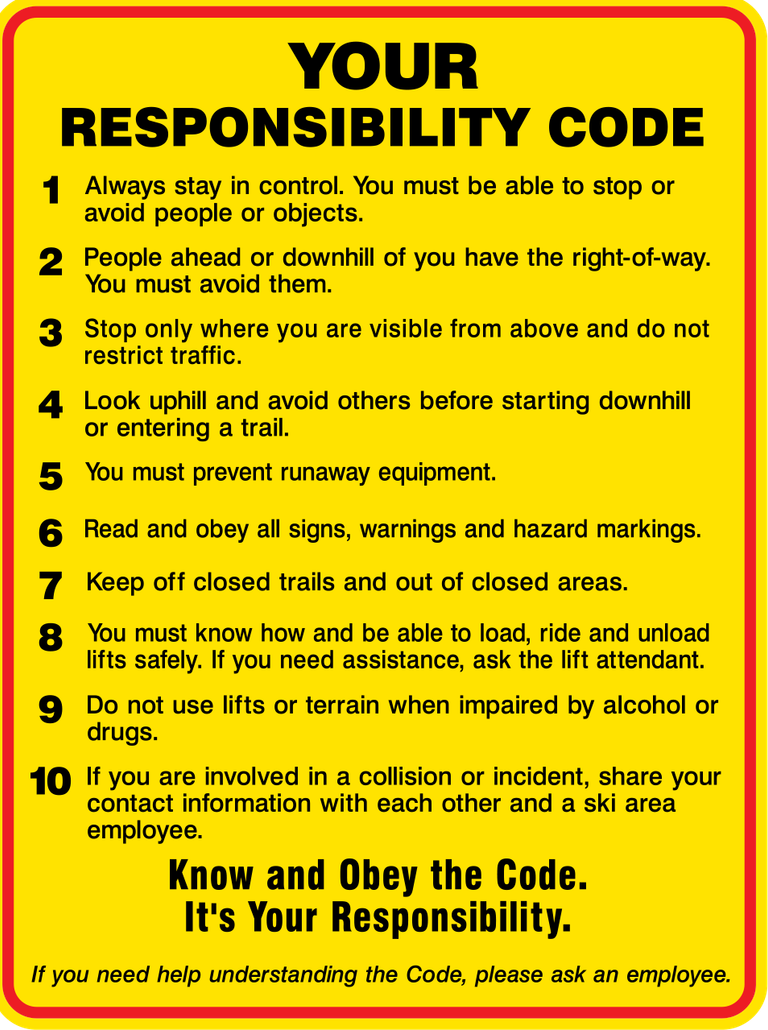 Observe the code and share with other skiers and riders the code for a great on-hill experience.