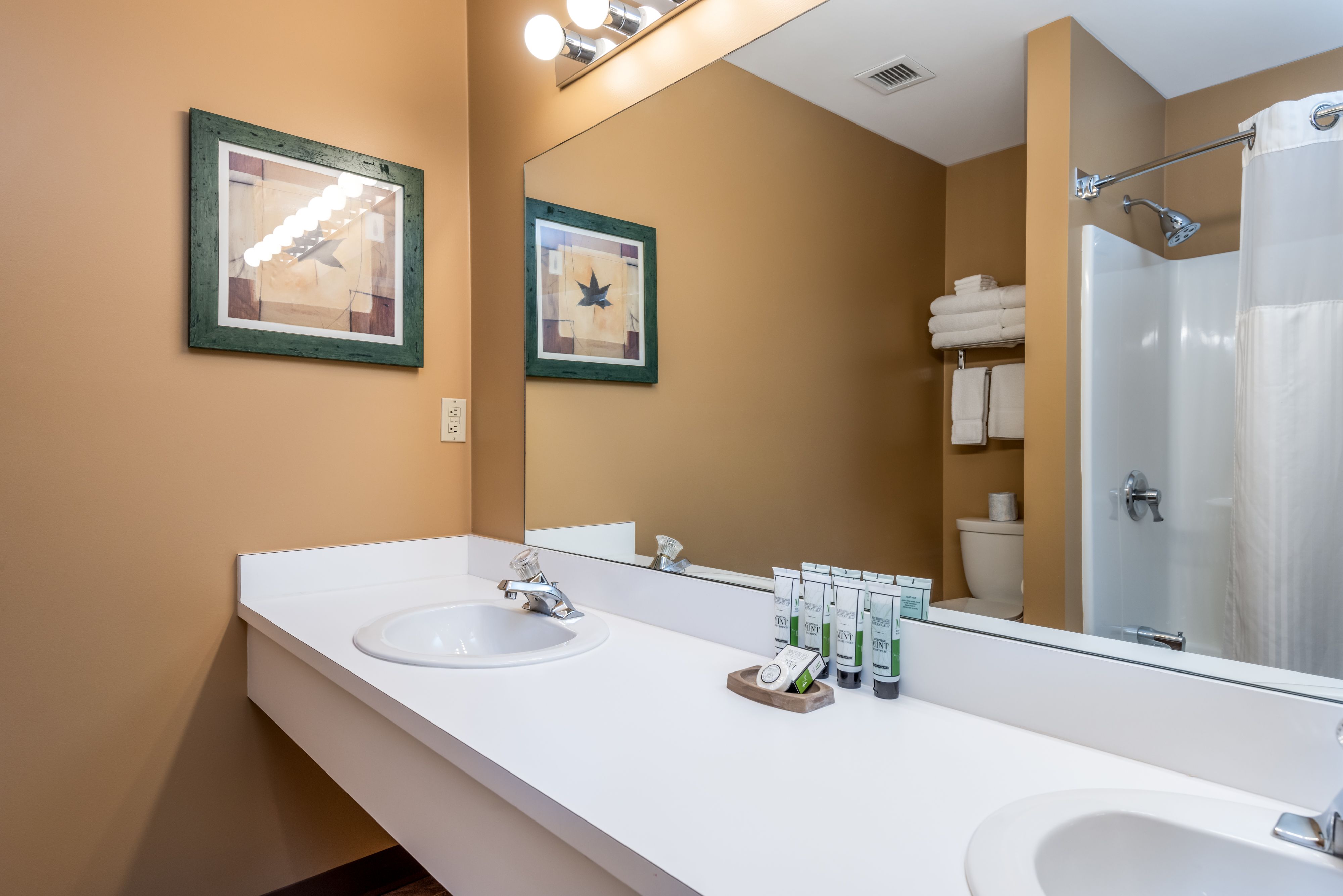Two queen beds and a kitchenette. Adjoining lockout rooms are available for select units.