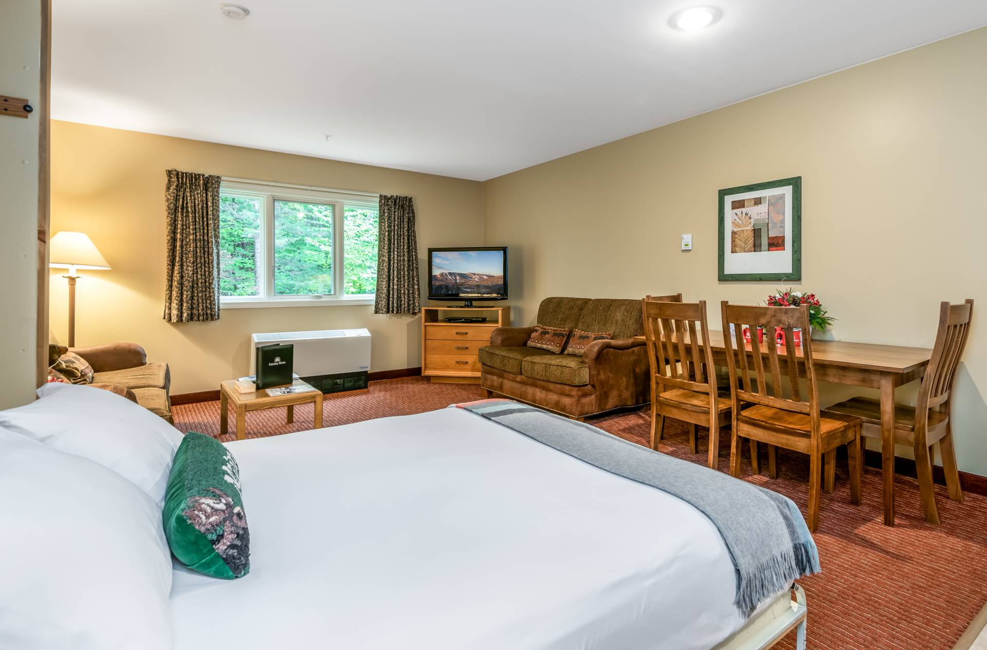Studio Superior units feature a queen-sized Murphy bed, which pulls down from the wall and folds up out of sight when not in use. Mattresses rest on platforms. These units also feature a kitchenette, while select units also offer an outdoor deck, adjoining lockout room, or handicap accessibility.