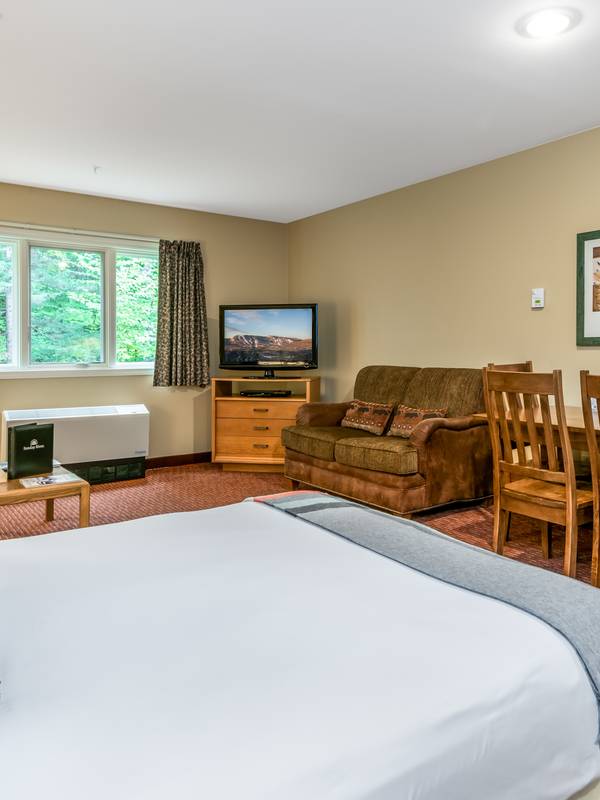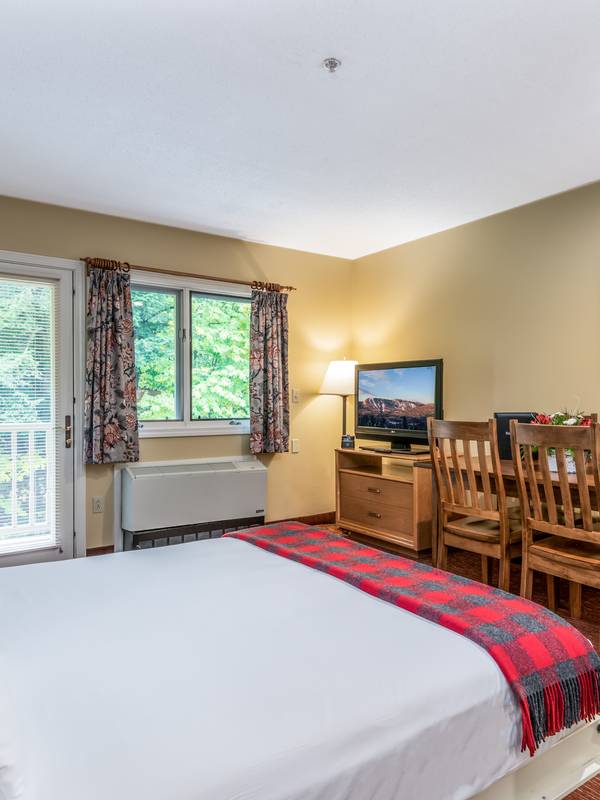 Studio Superiors offer a queen-sized Murphy Bed and kitchenette. Murphy beds pull down from the wall and fold up out of sight when not in use. Mattresses rest on platforms. Select units also offer an outdoor deck, adjoining lockout room, or handicap accessibility.