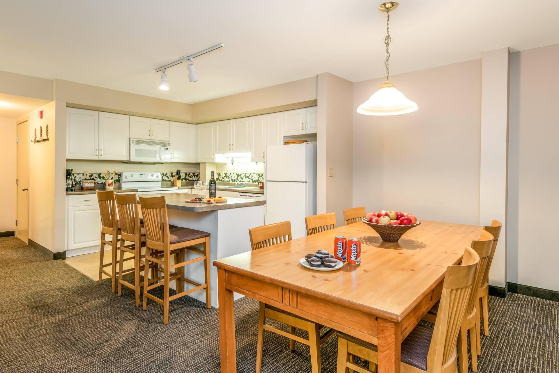 Each Three-Bedroom Suite is unique. Each offers three bedrooms separate from the living space with either a two or three-bathroom configuration. All units offer a full living area, kitchen, and an outdoor deck. Select units offer a gas fireplace, laundry, or sauna. Availability is limited and early booking is recommended.