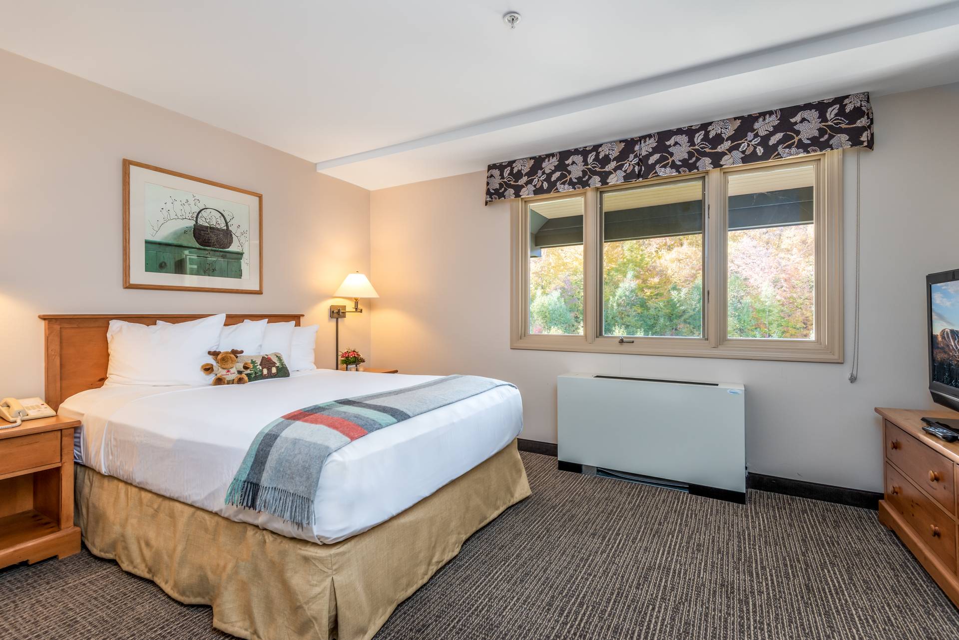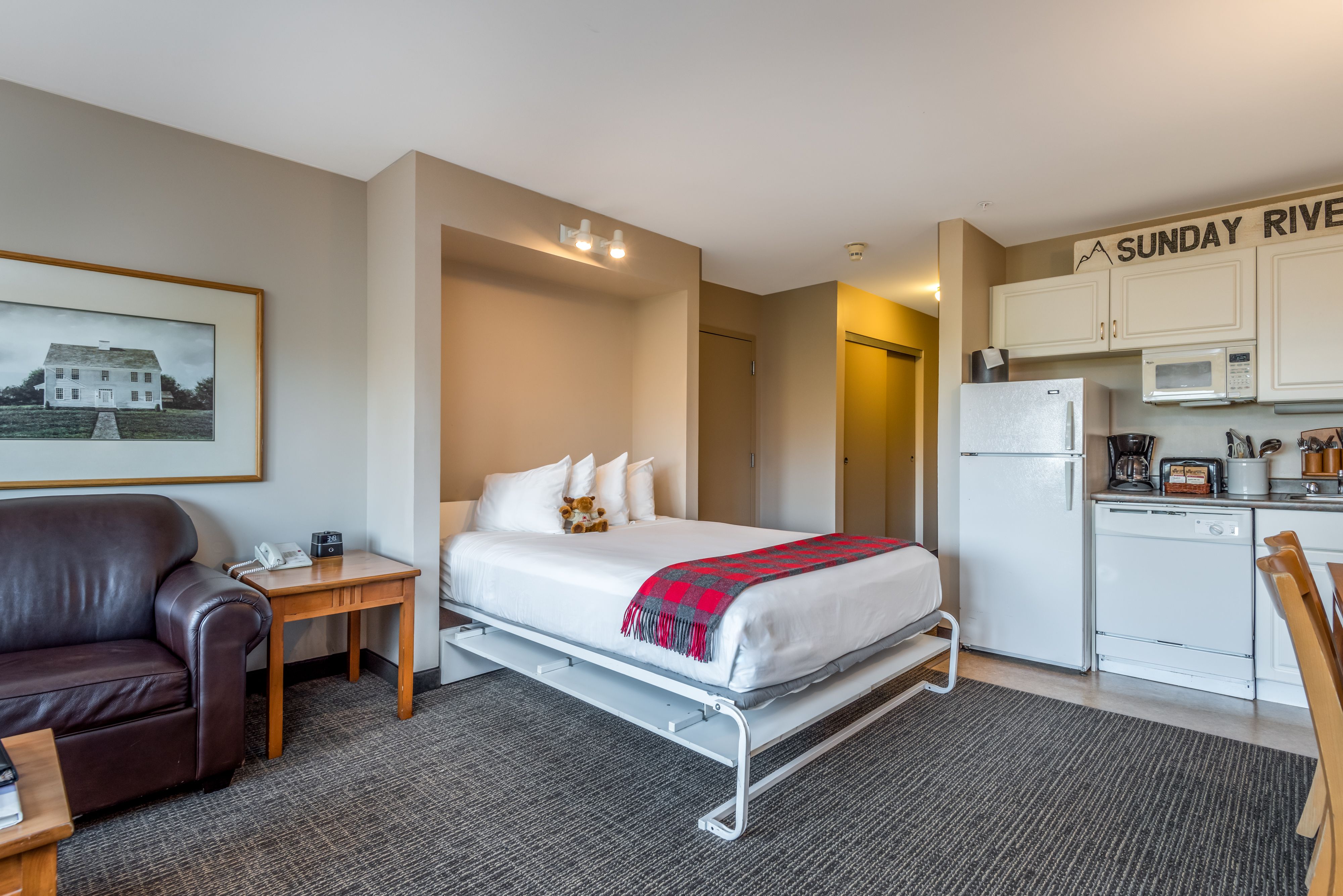 Two-Bedroom Executive Suites have two separate bedrooms. The bedrooms are separate from the living space. All units offer a full living area, kitchen, and an outdoor deck. Select units boast a gas fireplace, laundry, or sauna. These are considered penthouse suites. Availability is limited and early booking is recommended.