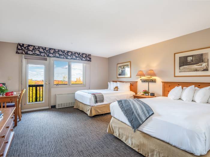 Standard Rooms offer two queen Boyne Beds. Select units offer an outdoor deck, adjoining lockout room, or alternate bed configuration with one queen bed and one sleeper sofa.
