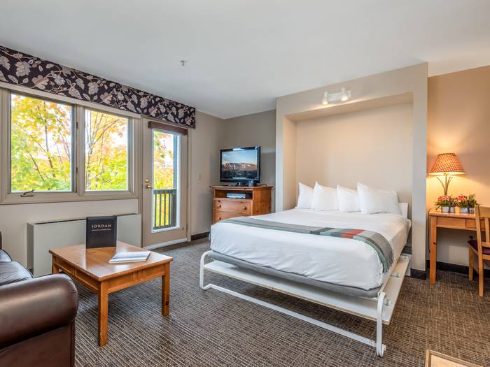 As you enter the newly renovated lobby, you'll immediately feel the connection between the contemporary mountain design and the natural surroundings. The Jordan is just minutes from the Sunday River Golf Club during Summer and Fall stays, and boasts ski-in/ski-out accessibility to some of the best terrain at the resort throughout the winter.