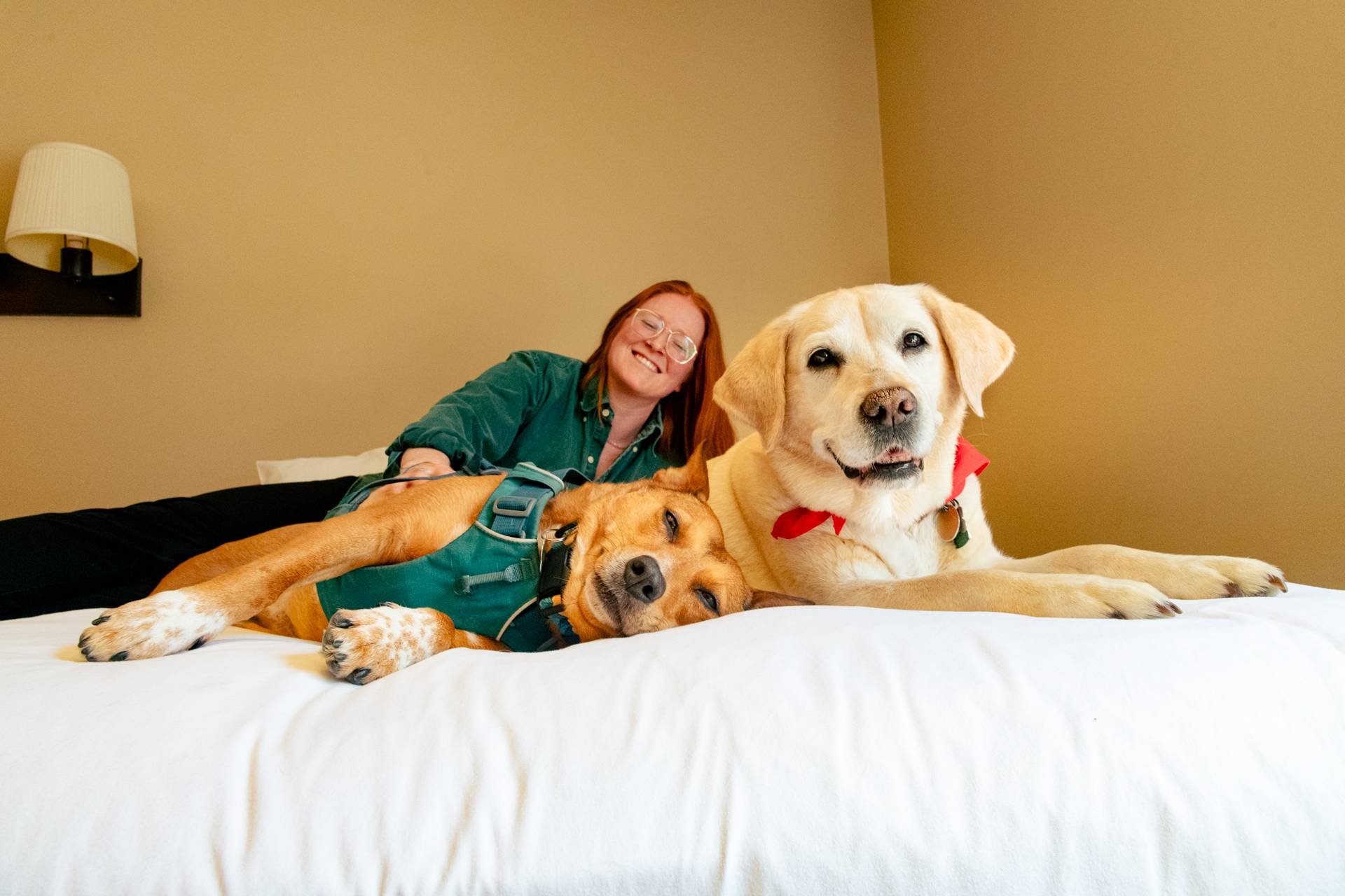 We get it, dogs are part of the family too. Pooches are welcome to lounge with their humans on the newly renovated deck or curl up on a bed after a long day of adventuring and sniffing.