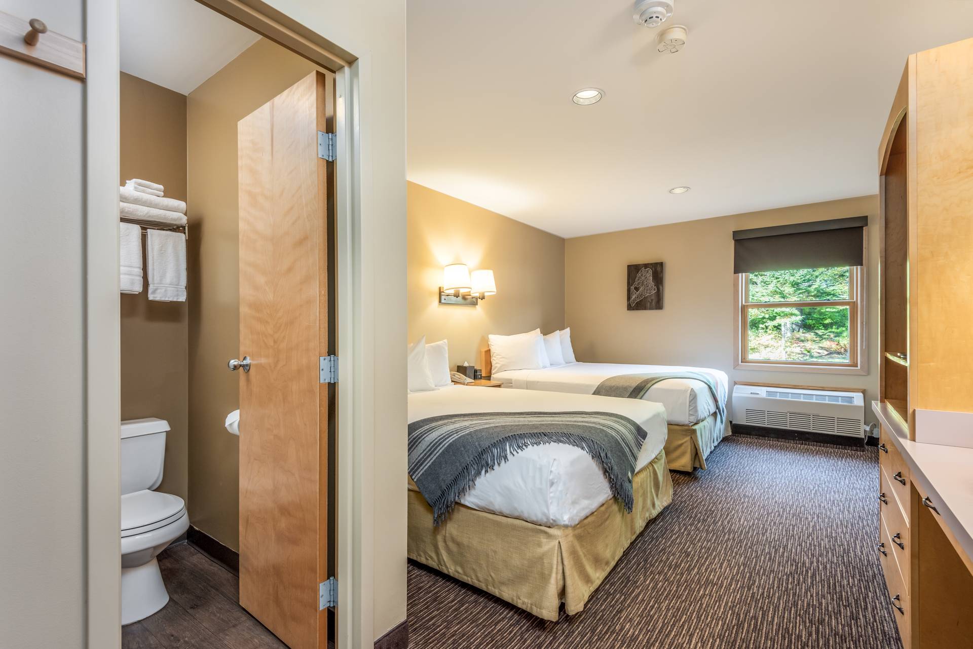 Standard rooms feature two plus queen beds, a mini-fridge, and a TV. The Snow Cap Inn is also a dog-friendly hotel, so bring along your favorite four-legged friends!