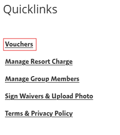 In the "Quicklinks" menu, click on Vouchers. You will see a list of available vouchers under your account. Locate the vouchers labeled "Passholder Ticket".
